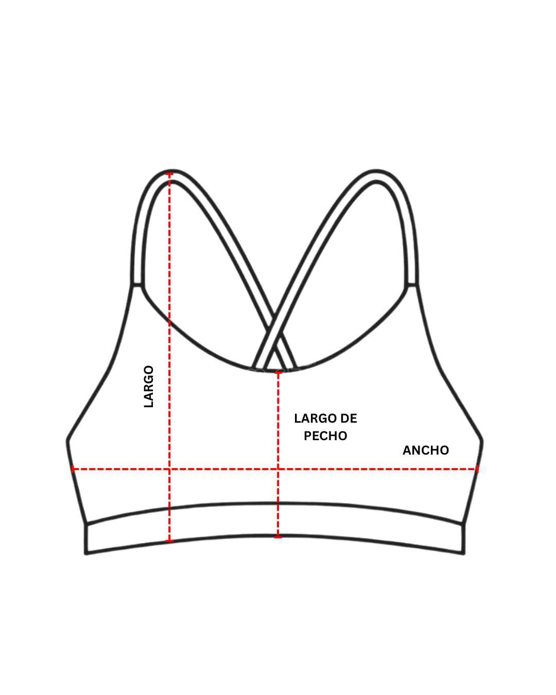 El top deportivo, con detalle frontal y elástico ancho inferior, brinda un ajuste firme sin perder comodidad, perfecto para moverte con libertad.
